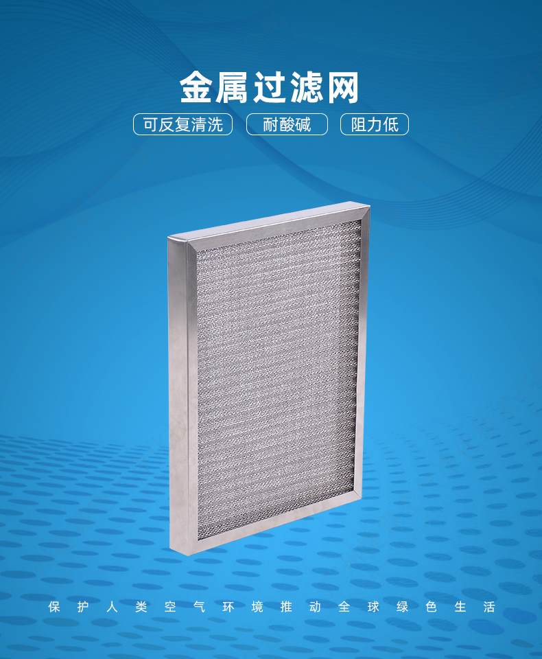 金屬過濾網采用多層擴張鋁箔網或不銹鋼網的產品,是過濾器的專用濾材,經輾壓成波浪網形,以正確的角度彼此交叉疊合而成,過濾網多層折疊擴張是以不同的密度、孔徑由粗到細的排列,使物體通過時多次改變流動方向,增大其效率。